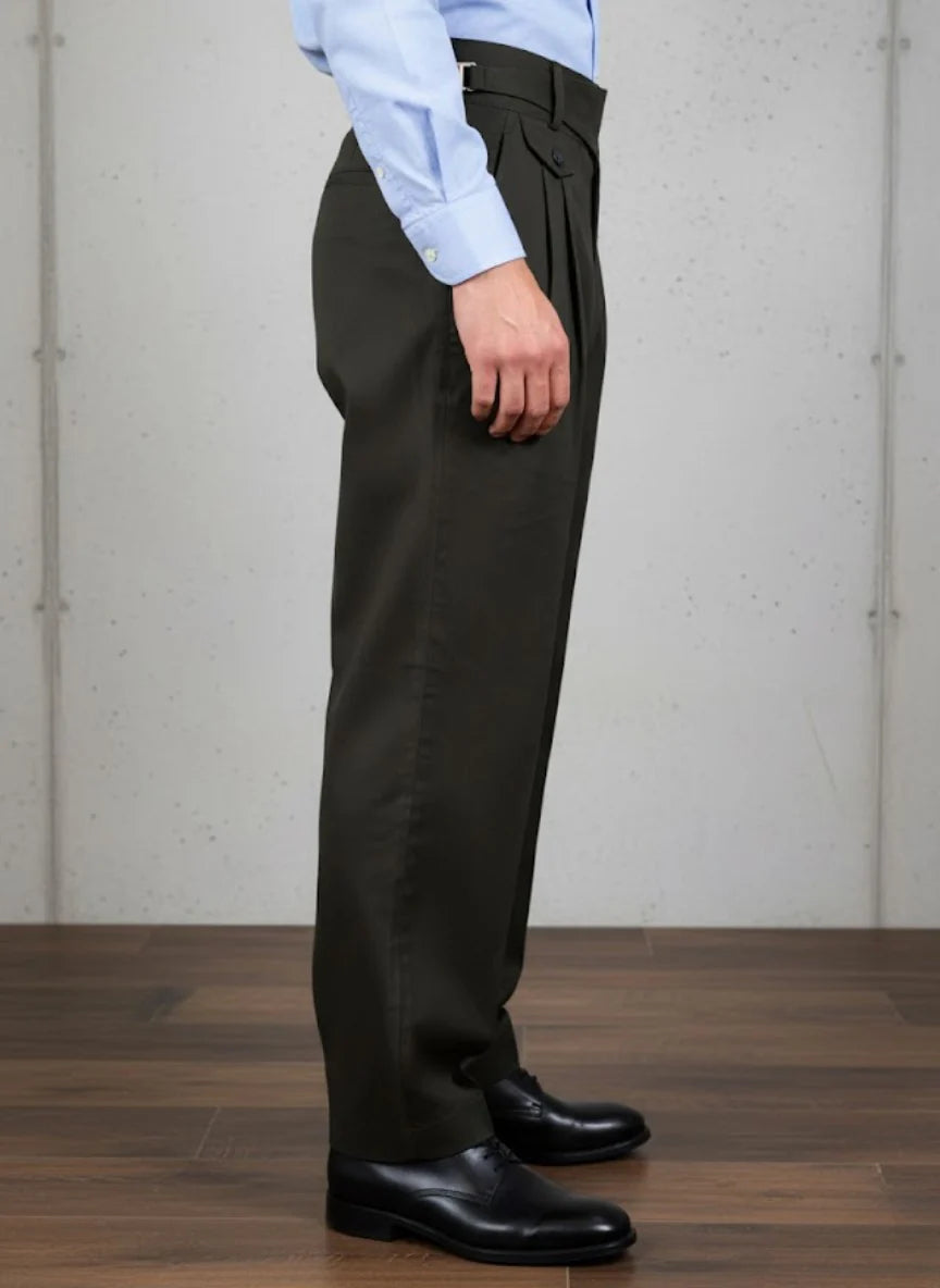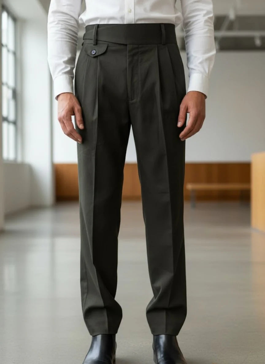 Inform when this item available Men’s Olive Green Gorkha Pants – 100% Cotton, Classic Straight Fit with Side Button Flap